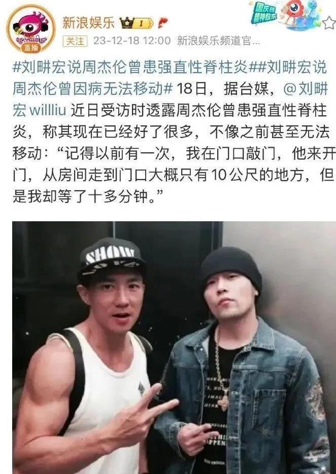 可时间不饶人。周杰伦患有强直性脊柱炎,这病折磨了他二十多年。朋友刘耕宏曾说,他有时候走十米路都要十几分钟,睡觉都得坐着。每次发病,身体像被钉住,动一下都疼得要命。